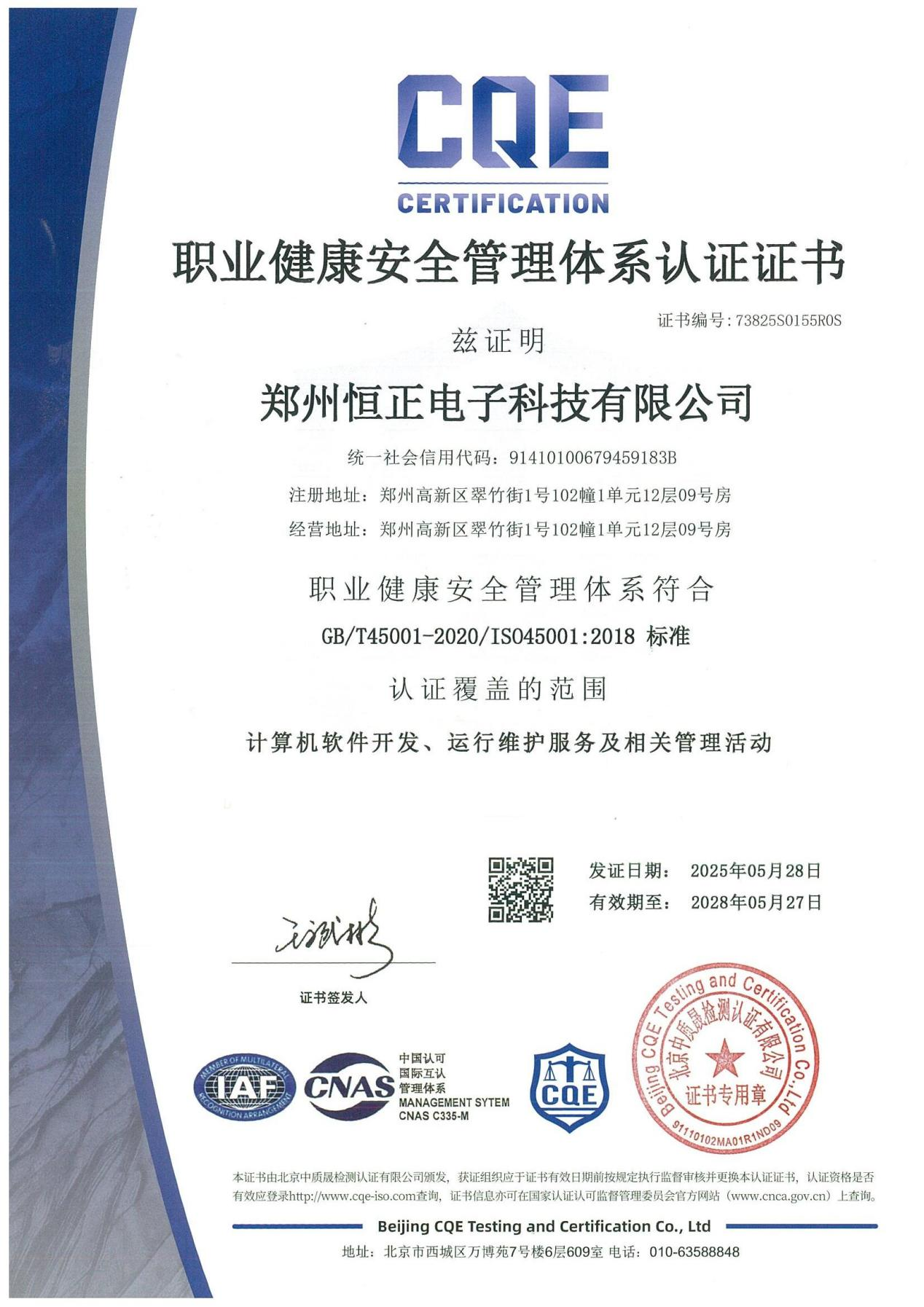 多年來,公司始終保持 ISO “三體系”(ISO9001 質量管理體系、ISO14001 環境管理體系、ISO45001 職業健康安全管理體系)認證的有效運行,并在近期再次通過審核下證。此次認證范圍覆蓋計算機軟件開發、運行維護服務及相關管理活動,標志著公司在核心業務全流程管理上持續以高標準體系賦能發展。